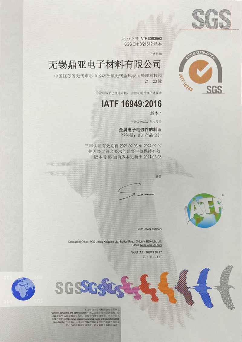 IATF 16949:2016认证证书